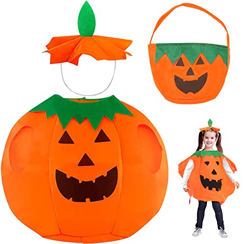 Sunshine smile Costume da Zucca per Bambini, Costume da zucca per Halloween, con Borsa di Zucca di Halloween, Cappello di Zucca, Costumi di Halloween per Bambini, Cosplay Costumi per Bambini