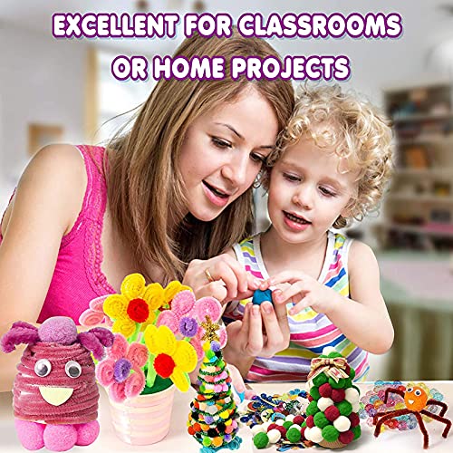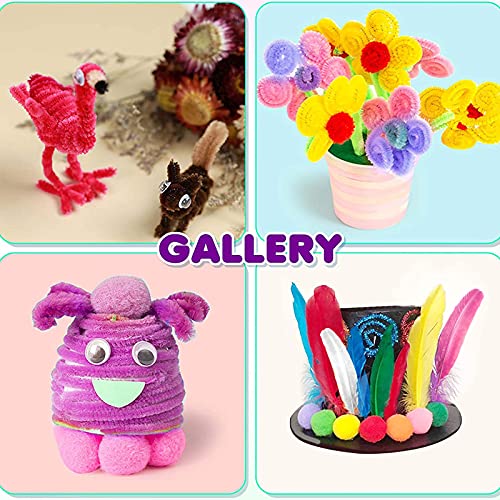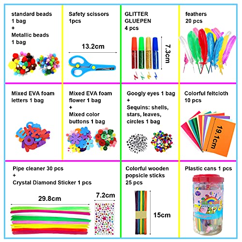 Sunshine smile Forniture Artigianali per Bambini, 1000+ Pezzi di Arti e Mestieri Fai da Te, Kit per Bambini, Kit per Scrapbooking con Perline, Pompon, scovolini, Piume, Occhi Finti, Paillettes