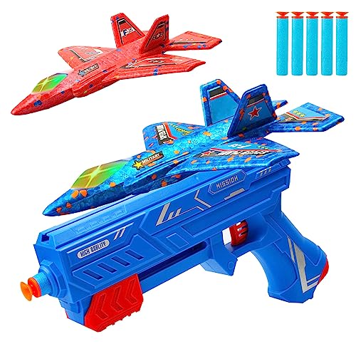 Giocattolo aereo 2 in 1: il pacchetto di alianti contiene 2 aerei colorati, un lanciatore aereo giocattolo. Lancia aerei di schiuma a mano o volali con un lanciatore per promuovere la coordinazione, l'osservazione e l'orientamento delle mani e degli occhi dei bambini e godersi il gioco in qualsiasi momento.