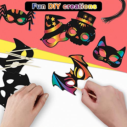 Sunshine smile 18 Pezzi Scratch Art, Maschera da Grattare per Bambini con Corde Elastiche e Bastone,Gratta e Vinci per Bambini,Decorazioni per Halloween (18)