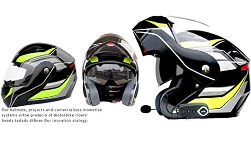 SUNSHOP Casco Moto Bluetooth, Casco Integrale Modulare Apribile con Doppia Visiera Parasole, Casco Certificato DOT/ECE, Radio MF Incorporata,Verde,XXL