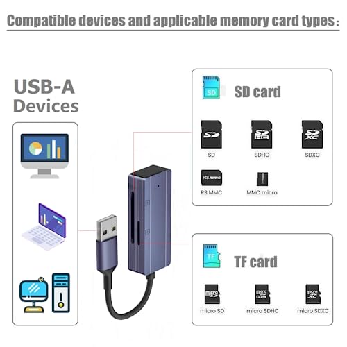 Sunshot 2in1 lettore di schede USB SD/TF, adattatore per lettore di schede SD per tutti i computer o laptop con porta USB A, adattatore per visualizzatore di videocamere con doppio slot.