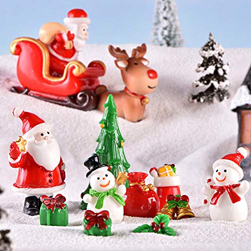 SUNSK Nnatale Ornamenti Resina Accessori Natalizi in Miniatura Babbo Natale Albero di Natale Pupazzo di Neve Mini Natalizia Decorazione 15 Pezzi