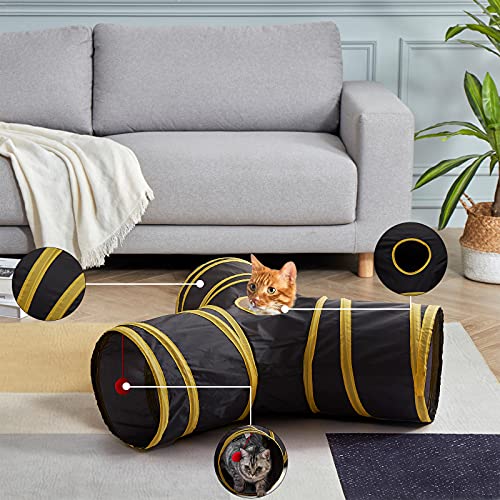 SunStyle Home Cat Tunnel per gatti interni 3Way Play Toy Kitty Tunnel Peek Hole giocattolo with Ball for Cat Tube Fun for rabbit Kittens and dog (3Way, Black)