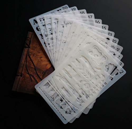 Design: questo set include 12 stencil pittura di 12 diverse fantasie, composto da lettere dell' alfabeto, numeri, forme, geometria pattern, simboli matematici, design a forma di animali, ecc. varie forme di soddisfare le vostre diverse esigenze.
