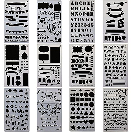 Sunswei 12 pz Bullet Gazzetta stencil set planner modello stencil per diario, scrapbooking, disegno, artigianato e progetti artistici