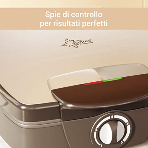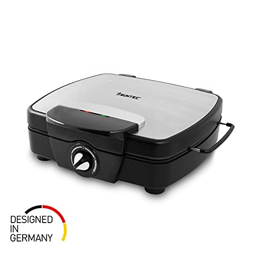 SUNTEC piastra per waffle per 4 waffle belgi spessi - Piastra per waffle da 1200 watt - Leva per waffle in acciaio inox - Piastre antiaderenti - Forma quadrata - Gusto per bambini e adulti - WAE-8335