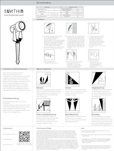 SUNTHIN Faretto solare a LED, 4 in 1 Faretti Solari da Esterno, automatico on/off, 4Wf aretti da giardino solari,IP65impermeabile, per giardino,cortile,alberi,prato,vialetto