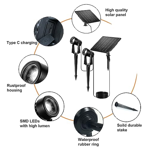 【La tecnologia LED integrata elimina la necessità di sostituire le lampadine】 Faretto solare a LED I chip LED di alta qualità e il corpo luminoso integrato garantiscono una maggiore durata e prestazioni impermeabili. Perfetto per patii, portici, terrazze, piscine, cortili, giardini, garage, vialetti, sentieri e altro ancora.