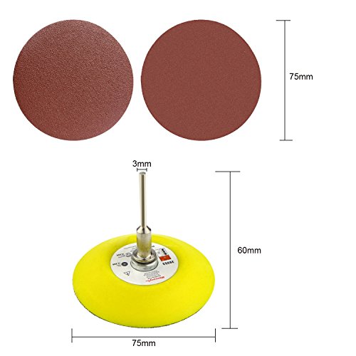 Comprese carte abrasive da 60 pezzi, disco levigatore disco Sander da 76 mm 3 "(80-3000grits) in diametro 76 mm e gambo 1 pz e pad polacco.