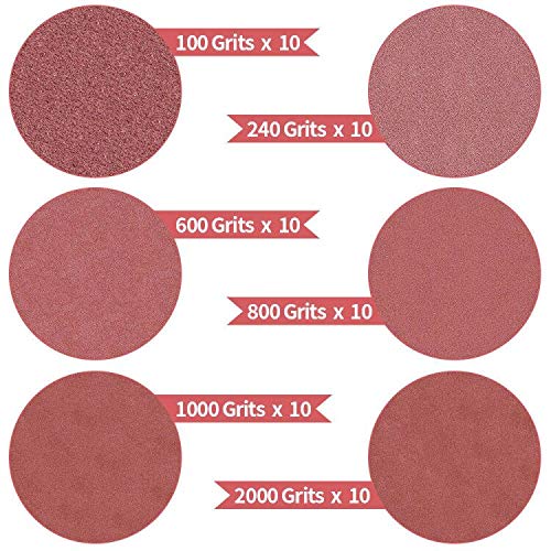 SunTop Dischi Di Carta, Dischi Abrasivi, 60 Pezzi Kit di Carta Abrasivi, diametro: 76 mm per levigatrice, grana da 10 × 100, 240, 600, 800, 1000, 2000