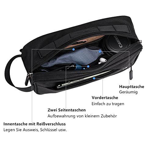 Dimensioni: 25 x 7 x 13 cm (lunghezza x larghezza x altezza) circa 3 litri. Ampio spazio di archiviazione: La tasca principale ha uno scomparto con cerniera e due tasche laterali per riporre facilmente gli oggetti. Sulla parte anteriore della borsa si trova una tasca con cerniera per cellulare o altri oggetti.