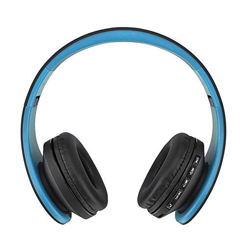 Sunvito - Lettore MP3 4 in 1, pieghevole, con Bluetooth 3.0, cuffie e Radio FM, Cuffie con cavo e Mic Stereo Bass, cuffie per iPhone Samsung iPod PC Android blu