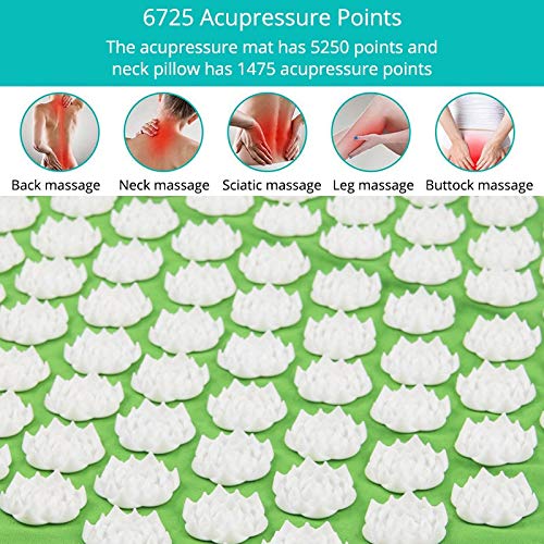 SUNXK Lotus Yoga Massage Mat Prickly Shakti Mat Digitopressione Stress Relief Corpo applicatore Kuznetsov Sensi Mat Agopuntura Carpet (Color: Green Set)