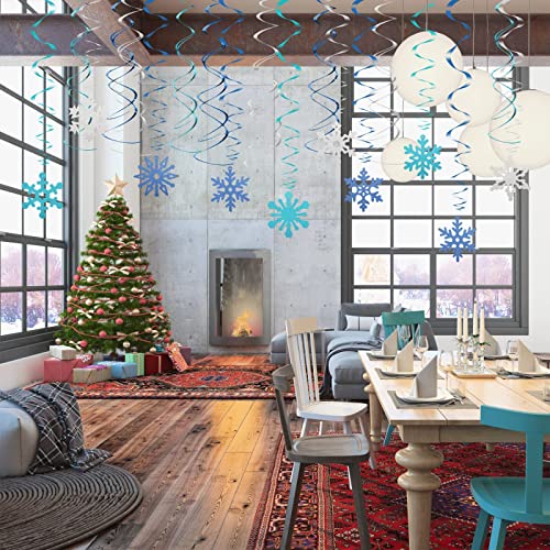 SUNYOK 36 PCS Natalizi Decorazioni Fiocco Neve da Appendere Argento Blu Natalizie Spirale Fiocco di Neve Vortici appesi Decorazioni Natalizie
