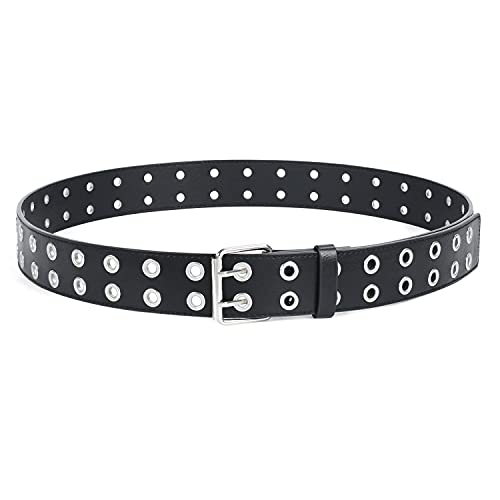 SUOSDEY Cintura punk donna e uomo, moda doppio foro cintura in pelle da donna per pantaloni abito cintura di jeans, B: nero, S/pantalone 68/88 cm (27/35")