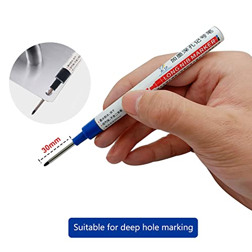 ❥ Segna per fori profondi: questo pennarello per fori profondi è progettato con una punta lunga 30 mm/1,18 pollici, che può facilmente segnare in fori profondi o luoghi difficili da raggiungere, comodo da usare.