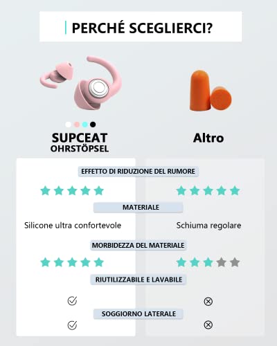 【RIUTILIZZABILE E LAVABILE】 I tappi per le orecchie a cancellazione di rumore SUPCEAT sono realizzati in silicone super morbido riutilizzabile e facile da pulire, a differenza dei tappi per le orecchie in cera o mastice di silicone, sono flessibili, materiale per bambini, non appiccicoso e non prendono capelli e polvere ovunque dopo il risveglio il giorno successivo. Inoltre, ti farà risparmiare un sacco di soldi a lungo termine mentre abbandoni l'uso di tappi per le orecchie usa e getta.