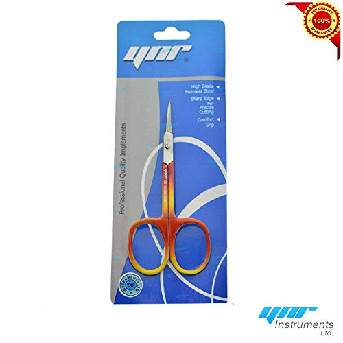 Ynr Super Affilate Cuticole Forbici per Unghie Punta Curvata Punto a Freccia Acciaio Inox Multi Colore - arancione e giallo