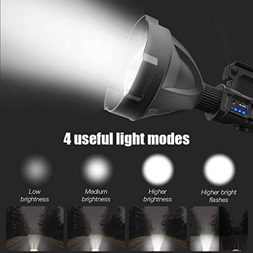 【SUPER BRIGHT SPOTLIGHT FLASHLIGHT】: This is a 90000 lumens LED Spotlight flashlight, which adopts upgraded P50 lamp beads to provide super bright light, and the beam distance exceeds 500 meters. Light up your way forward. The long lighting range of up to 1000 meters (about 3280 feet) makes it a long distance high power LED spotlight.