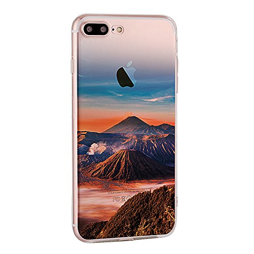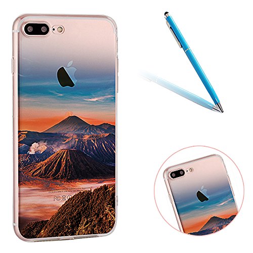 Super Clear Protettore Custodia in Soft TPU Silicone per Apple iPhone 7Plus 5.5"(NON iPhone 7 4.7"), CLTPY Creativo Cute Natura Paesaggio Costruzione Reticolo Disegno Serie Ultra Sottile Leggero Flessibile Morbido Protettivo Bumper Case per iPhone 7Plus + 1x Stilo - Vulcanico