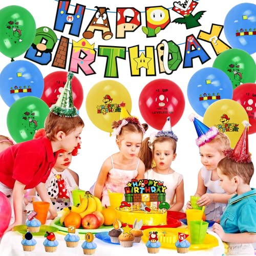 【Alta qualità】Lo striscione e la decorazione per torta Happy Birthday Mario sono realizzati in cartone di alta qualità. I palloncini di Super Mario sono realizzati in lattice naturale. Riutilizzabile, ecologico e sicuro per i bambini.