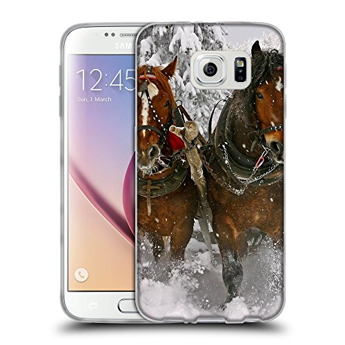 Super Galaxy TPU Gel Funda Carcasa Tapa Case Cover para // V00003430 carrozza trainata da cavalli nella neve // Samsung Galaxy S6 (Not Fits S6 EDGE)