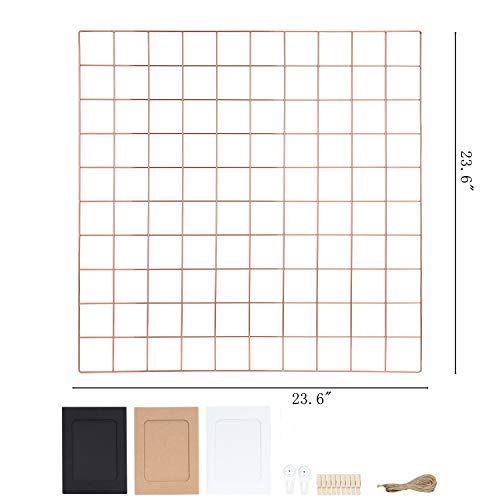 Prestazioni ad alto costo - I pannelli a griglia sono il display del negozio più versatile sul mercato, possono essere utilizzati a parete, soffitto, in modo indipendente o collegati ad altri pannelli. Le possibilità per questa griglia di visualizzazione sono illimitate. Decora la tua parete ovunque, in qualsiasi momento e come vuoi. È realizzato in filo metallico di alta qualità e zincato su oro rosa. È bello e resistente alla corrosione.