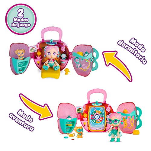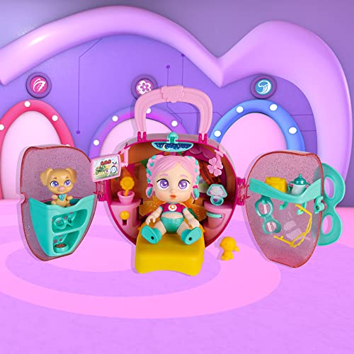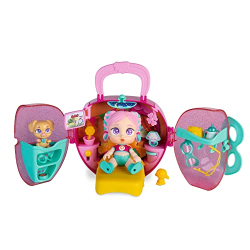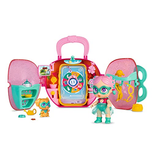 SUPER CUTE LITTLE BABIES - Mini Take-Along Camera da letto con Gabi, Supereroe Baby Doll in versione piccola con scatola valigetta che si trasforma in camera, animale domestico e accessori, Famosa
