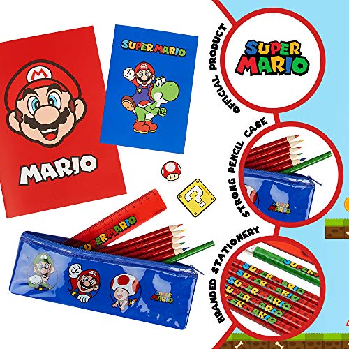Super Mario Set Cancelleria Con Astuccio Scuola, Matite Colorate, Gomma Da Cancellare, Matita HB, Agenda Super Mario, Temperino E Righello, Idea Regalo Bambino