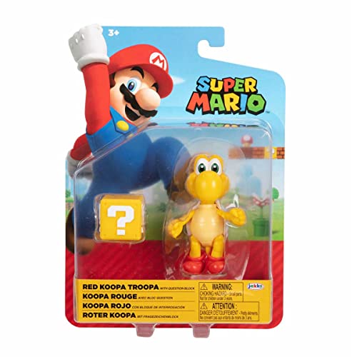SUPER MARIO Collezione Red para Koopa Troopa 10,2 cm Poseable Action Figure Articolata con Accessorio Punto Interrogativo per Età 3+