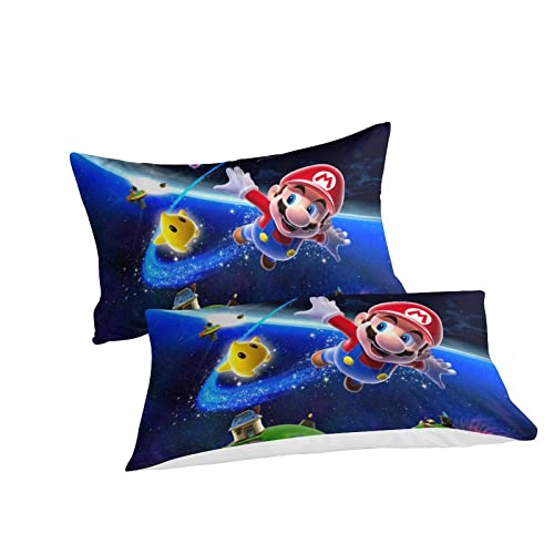 Super Mario Bros Set Copripiumino 3 Pezzi in Microfibra Morbida Con Chiusura A Cerniera E Federe Cuscino Biancheria Da Letto Set Piumini E Cuscini Copripiumini Dermocompatibile King(220x240cm)