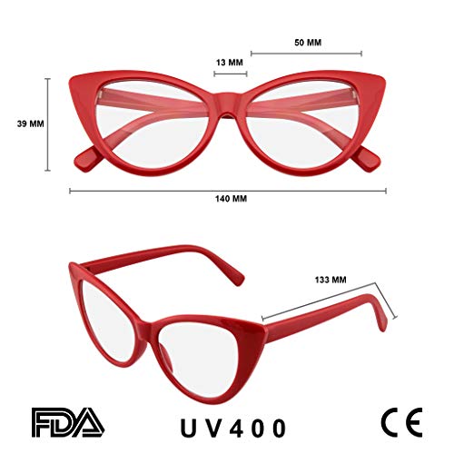 Super Cat Eye Occhiali Moda Vintage Mod Clear Lenti Occhiali (Rosso)