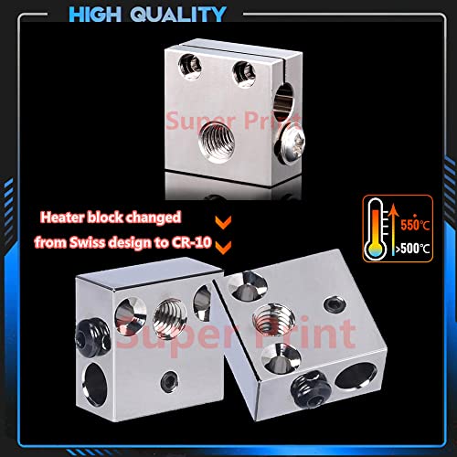Questo ugello in rame placcato e blocco riscaldatore in rame placcato è molto resistente alla temperatura e non inizierà ad ammorbidirsi o ricottura fino a oltre 500 ° C, rendendolo perfetto per la stampa 3D ad alta temperatura che altri ugelli non possono gestire. (ma è particolarmente importante a temperature superiori a 300°C dove non è possibile utilizzare un calzino in silicone.)
