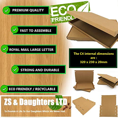 Super Strong C4/A4 (320 x 230 x 20 mm) Royal Mail Brown Grandi scatole postali in cartone ecologico perfette per regali di Natale gioielli (C4/A4 - 320 mm x 230 mm x 20 mm - Confezione da 25)