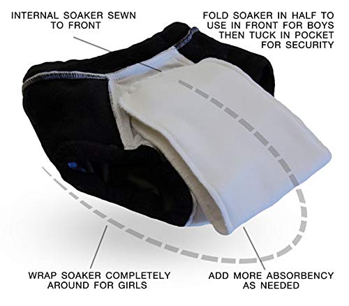 I bambini li pantaloni sono costruiti con due separati Soaker cuscinetti di microfibra all' interno, che è abbastanza per contenere fino a 450 ml di liquido, ma oltre che il UNDIES hanno un sistema interno a ricevere anche più assorbimento.
