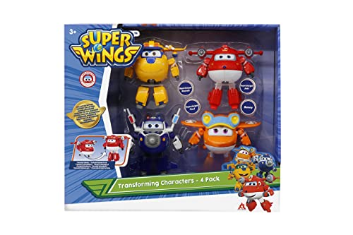 SUPER WINGS SET DI GIOCATTOLI - Contiene 4 pezzi di aeroplani giocattolo. Sono tutti eroi del cartone animato Super Wings, Jett, Paul, Donnie e Sunny. Raccontano la storia del robot aereo Jett e dei suoi amici che viaggiano in tutto il mondo per aiutare i bambini a risolvere i problemi.
