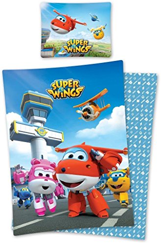 Super Wings parure di letto bambino 100% cotone - Copripiumino reversibile + federa