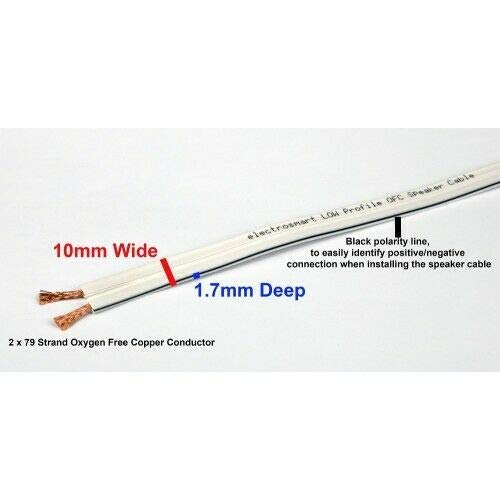 25m Superb Quality Low Profile Flat White Oxygen Free Copper OFC Loud Speaker Cable - Multi-Strand 158 (2x 79 Strand) by electrosmart? - Outside Dimensions of Cable: 1.7mm x 10mm