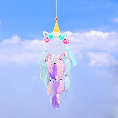 SuperCat Unicorn Dream Catcher Handmade Wall Hanging Dreamcatcher con Piume Colorate e Fiori per Unicorno a Tema Party e Decorazioni di Nozze