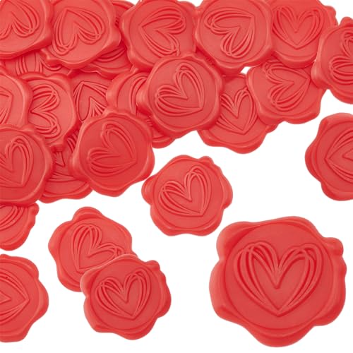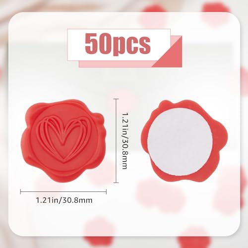 SUPERDANT 50 Pz Adesivi Sigillo di Cera Amore Rosso Sovrapposti Sigilli A Forma di Cuore 3cm Adesivo Sigillo Rotondo Adesivo per Busta per Inviti di Nozze