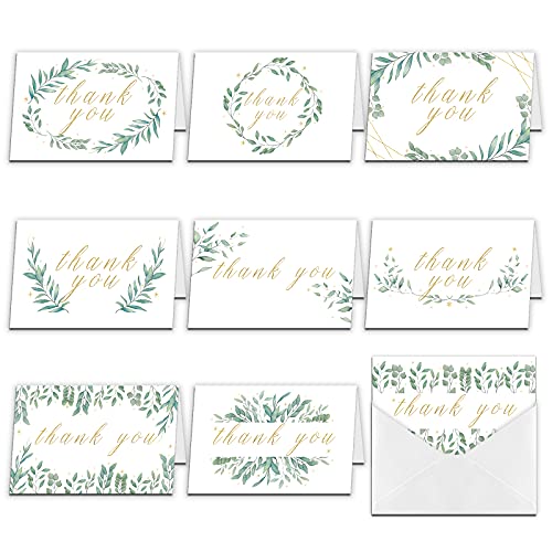 SUPERDANT 9 Pz Biglietti di Ringraziamento Modello Foglia Verde Biglietto di Auguri Tema Ringraziamento Set Biglietti di Ringraziamento con Buste per Ringraziamento Matrimonio Baby Shower 15x10 cm