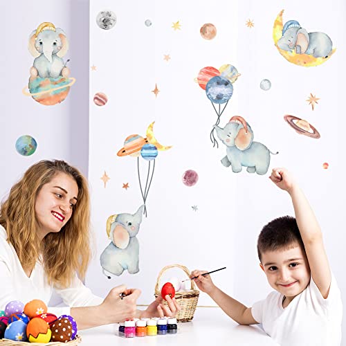 SUPERDANT Cappello Baby Elefante Decalcomanie murali Pianeta Luna Adesivi murali Camera da Letto Murale e Stelle Palloncino Decorazione murale Rimovibile per la Stanza del Bambino Vivaio Casa