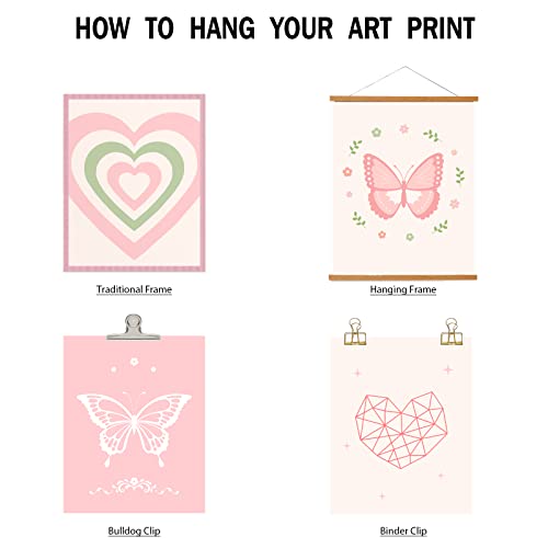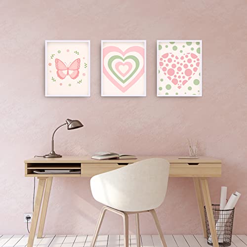 SUPERDANT Cuore d'Amore Rosa e Verde Stampe Artistiche da Parete Farfalla Senza Cornice Stampe su Tela Quadri Floreali Quadri Murali per Soggiorno Camera da Letto Decorazioni per Pareti Domestiche