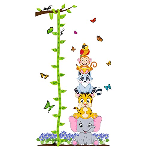 SUPERDANT 4 Fogli/Set Cartone Animato Altezza Grafico Wall Sticker Elefante Tigre Animali Autoadesivo Cartone Animato Altezza Adesivo da Parete per Soggiorno Camera da Letto 40x60 cm