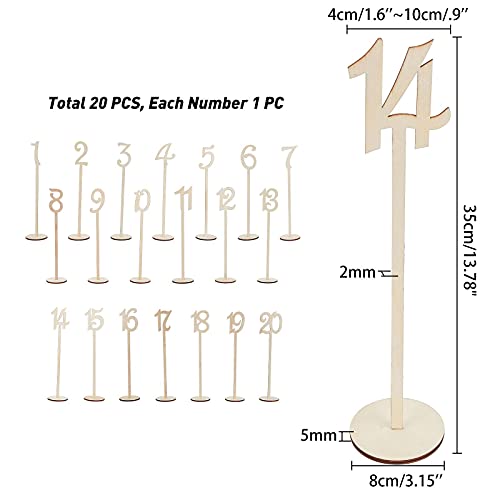 SUPERDANT 20 Pezzi Numeri da Tavolo in Legno da 1 a 20 Numeri da Tavolo per Matrimonio con Base Robusta Decorazione da Tavolo Vintage per Festa di Anniversario di Compleanno di Matrimonio