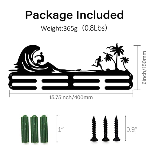 SUPERDANT Surfing Porta Medaglie da Competizione Ferro Medaglie da Corsa Cornice per Esposizione Motivo A Onde Gancio per Medaglia in Ferro Appeso A Parete 40x15 cm