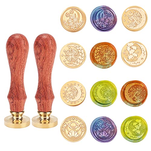 SUPERDANT Kit di Timbri di Ceralacca 6 Pezzi Moon Series di Teste di Timbri di Ceralacca con 2 Manico in Legno Kit di Timbri di Ceralacca Vintage per Carte Buste Inviti
