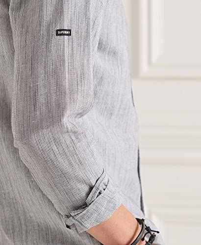 Superdry Cotton Linen Ls Shirt Camicia Uomo, Nero (Striscia Black), Large