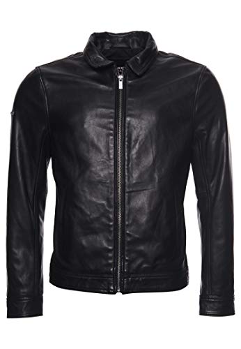 Superdry Curtis Light Leather Jacket Giacca, Nero (Black 02a), S Uomo